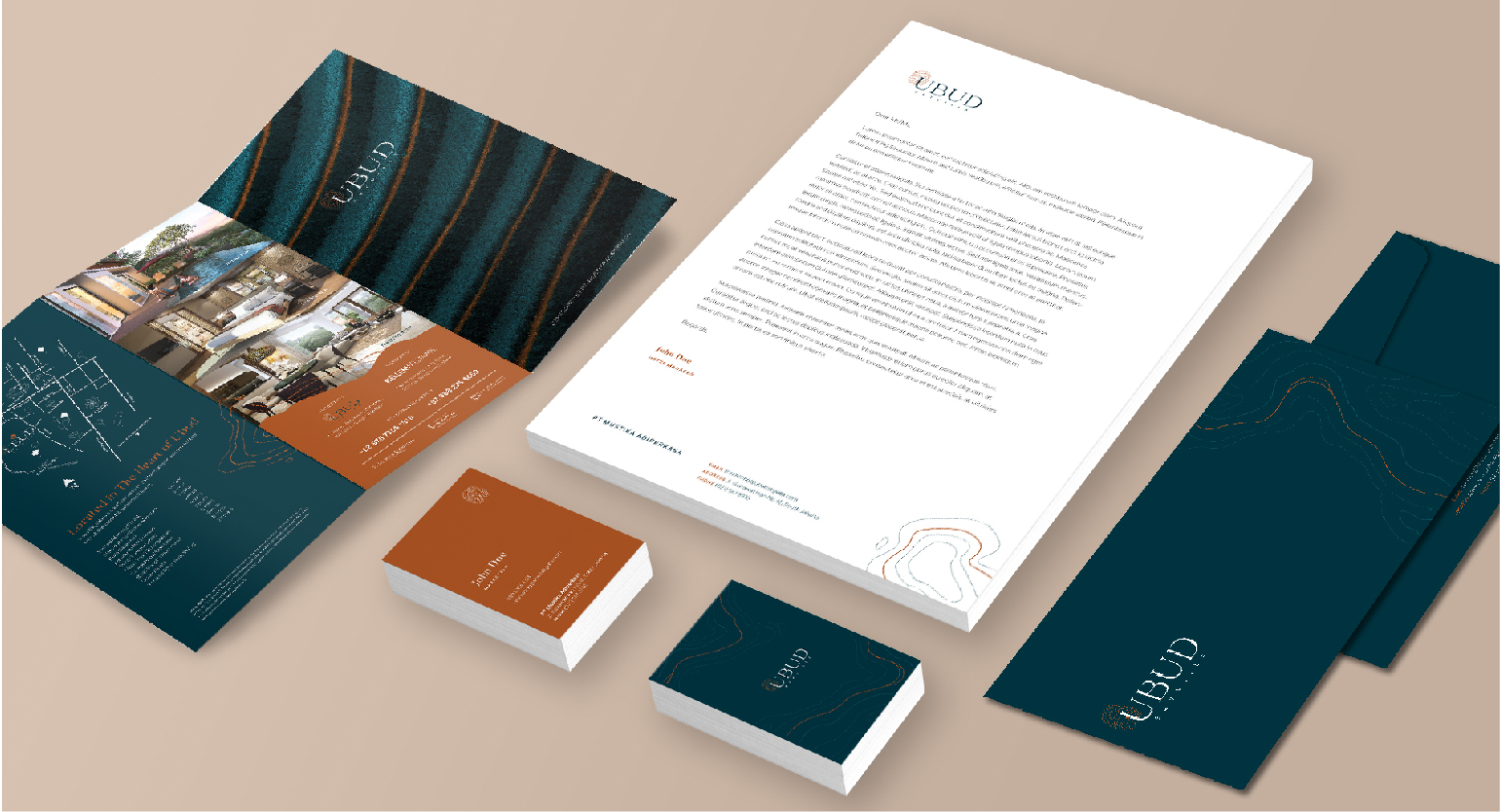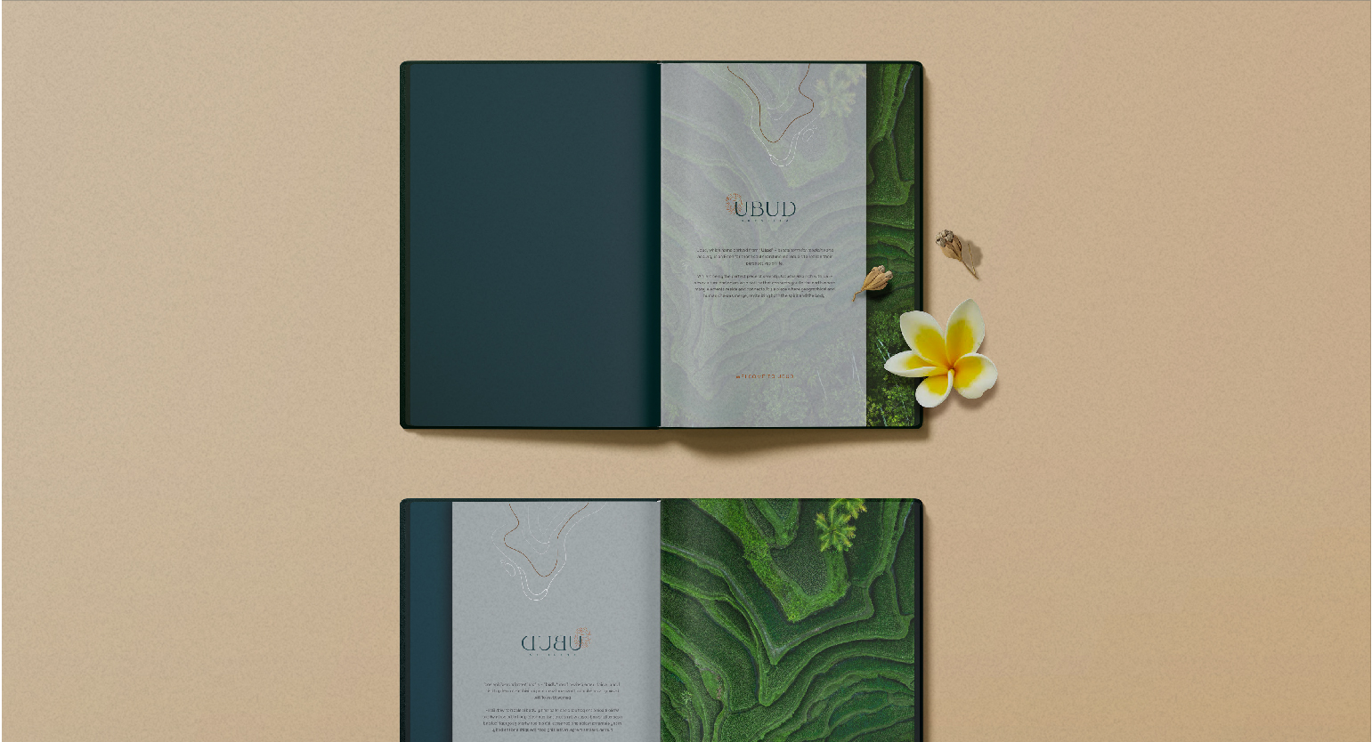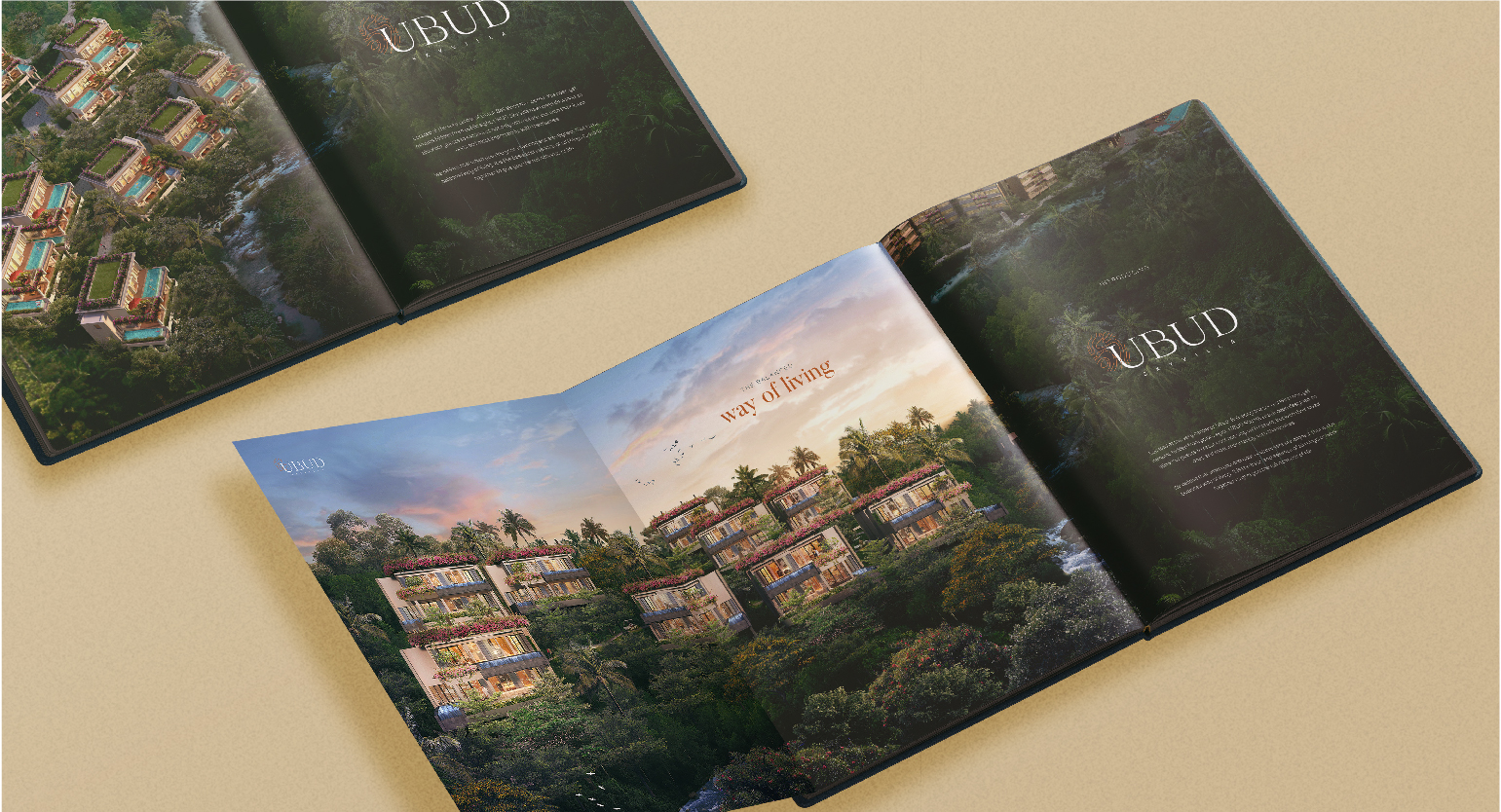 UBUD Skyvilla has a great brand identity, and marketing tools include customized wooden craved booklet cover. The brand, concept, and 3D rendering manage to attract investors and buyers.